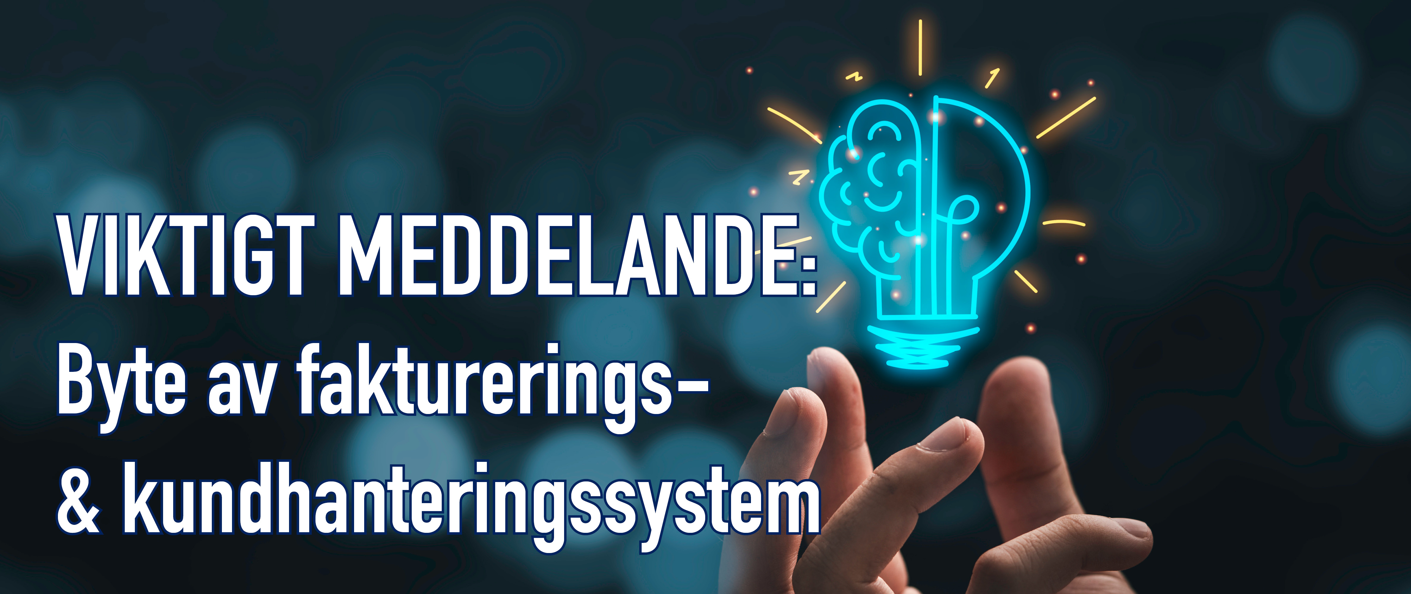 För att kunna erbjuda en modernare, snabbare och smidigare kundupplevelse kommer vi inom kort att byta både fakturerings- och kundhanteringssystem. Syftet med bytet är att effektivisera våra interna processer, korta handläggningstider och skapa bättre förutsättningar för att hjälpa dig som kund.